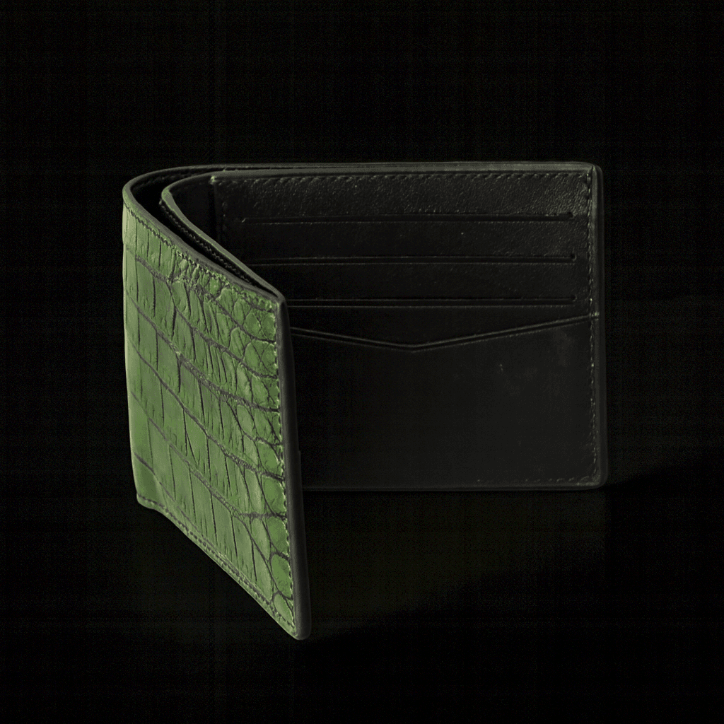 The process of making a custom leather wallet starts with designing the layout on paper, creating patterns for the outer shell, lining, and compartments. Next, the craftsman selects the leather type—such as calfskin, Togo, or crocodile—and prepares it by cutting pieces to size and skiving edges to reduce bulk. Stitching lines are marked, holes punched, and card slots or pockets are assembled first before being attached to the main body. The wallet is then glued and saddle-stitched by hand with waxed thread for strength. Edges are smoothed, painted or burnished, and polished to achieve a clean finish. Finally, the piece is pressed flat, conditioned, and personalized with details such as embossing, foil stamping, or contrasting thread, resulting in a unique, durable wallet tailored to the customer’s style.