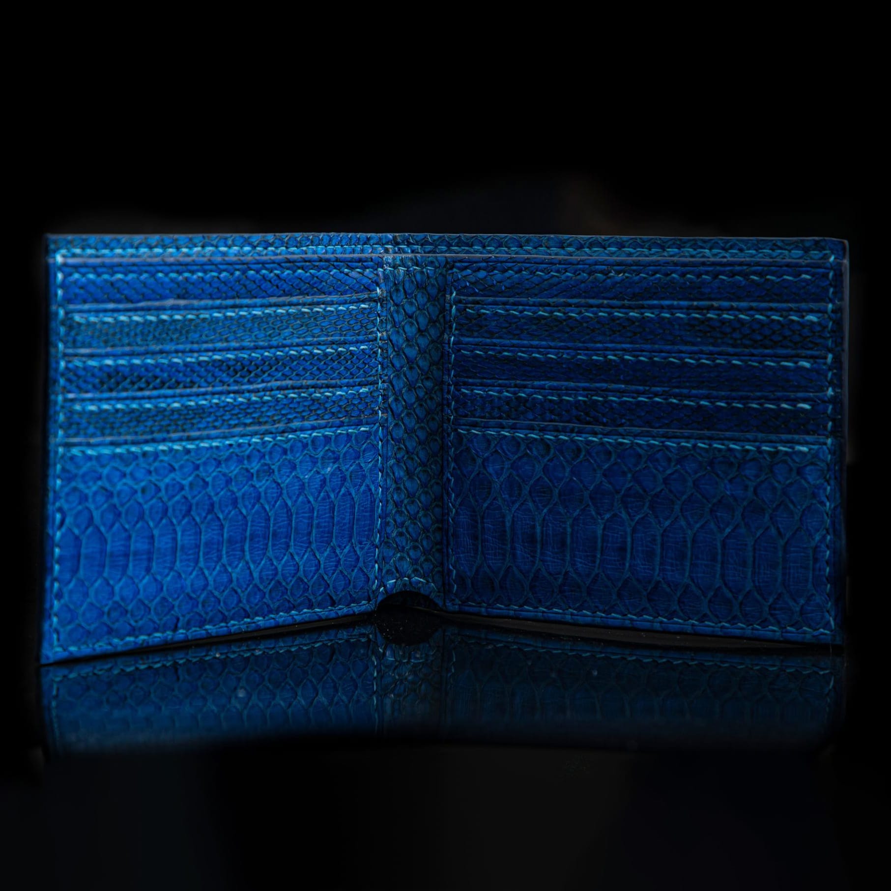 The process of making a custom leather wallet starts with designing the layout on paper, creating patterns for the outer shell, lining, and compartments. Next, the craftsman selects the leather type—such as calfskin, Togo, or crocodile—and prepares it by cutting pieces to size and skiving edges to reduce bulk. Stitching lines are marked, holes punched, and card slots or pockets are assembled first before being attached to the main body. The wallet is then glued and saddle-stitched by hand with waxed thread for strength. Edges are smoothed, painted or burnished, and polished to achieve a clean finish. Finally, the piece is pressed flat, conditioned, and personalized with details such as embossing, foil stamping, or contrasting thread, resulting in a unique, durable wallet tailored to the customer’s style.